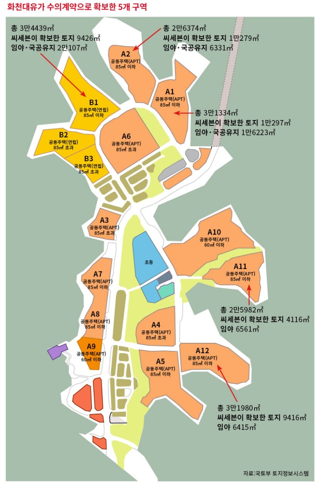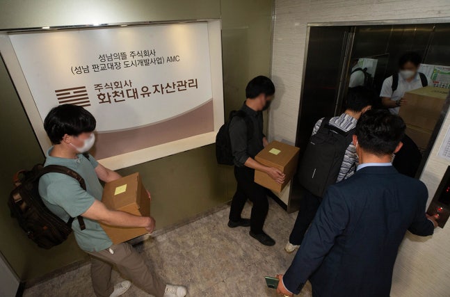 화천대유가 대장동 개발 과정에서 수의계약으로 받은 5개 구역의 3분의 1 면적을 2009년에 확보한 개발업체가 있다. 〈시사IN〉은 대장동 의혹의 주요 관계자들이 이 업체 소속이었다는 걸 확인했다. 대장지구 개발사업이 진행 중인 경기도 성남시 분당구 대장동 210번지 일대 모습.©시사IN 이명익‘1조981억원’, ‘2352억원’. 화천대유가 지난해까지 거둔 분양매출(1조981억원)과 누적 분양수익(2352억원)이다. 앞서 논란을 촉발시킨 ‘배당금 577억원’과는 별도다. 이 같은 대규모 수익의 핵심은 화천대유가 대장동 개발 과정에서 확보한 5개 구역이다. 직접 시공사를 선정해 아파트와 연립주택 등을 짓고 분양을 통해 이익을 내고 있다. 화천대유는 이 구역에 대한 권리를 ‘성남의뜰’과 수의계약으로 가져왔다. 그런데 이 5개 구역 전체 면적의 3분의 1을 이미 2009년에 확보한 부동산 개발업체가 있었다. 〈시사IN〉은 취재 과정에서 성남시 대장동 개발 의혹의 주요 관계자들이 이 업체에 소속되어 있었다는 사실을 확인했다. 화천대유 관계사 ‘천화동인 4호’의 소유주 남욱 변호사, ‘천화동인 5호’ 소유주 정영학 회계사다. 결과적으로 화천대유 관련자들이 과거 확보해둔 부지 관련 권리를 십수 년 뒤에 수의계약 형태로 돌려받아 천문학적인 수익을 내고 있는 모양새가 된 것이다. 성남의뜰과 화천대유 간 수의계약에 대해선 그동안 여러 의혹이 제기되었다. 대장지구 개발사업의 다른 부지에 대해서는 건설사 간 경쟁률이 182대 1까지 달했는데, 오로지 화천대유만 수의계약으로 경쟁 없이 토지를 확보했다는 사실 등이다. 의심은 짙었지만 선명한 연결고리는 보이지 않았다. 2009년 토지 관련 권리를 확보했던 부동산 개발업체와 2015년 화천대유 사이의 연속성과 불연속성이 수의계약의 진실을 밝히는 강력한 실마리가 될 수 있다. 최근 대장지구 개발사업 특혜 의혹에 대한 강제수사에 착수한 검찰이 수의계약 과정 전반을 면밀히 수사해야 한다는 지적이 나오고 있다. 대장지구 민관 합동 개발사업의 추진자로 거론되는 남욱 변호사.대장지구 개발사업은 경기도 성남시 분당구 대장동 210번지 일대 92만467㎡ 부지를 15개 구역(공동주택 12개, 연립주택 3개)으로 나눠 5904가구를 조성하는 1조2000억원(총사업비 기준) 규모 사업이다. 화천대유는 이 가운데 공동주택 4개(A1·A2·A11·A12 구역)와 연립주택 1개(B1 구역) 등 모두 5개 구역에 대한 사업 권리를 성남의뜰로부터 수의계약으로 확보했다. 성남의뜰은 대장동 개발사업을 위해 하나은행 컨소시엄(성남도시개발공사와 화천대유가 소속)이 50억원을 출자해 만든 특수목적법인이다. 화천대유가 수의계약으로 받은 5개 구역 총 면적은 15만109㎡. 총면적은 15만109㎡. 대장지구 전체에 지정된 택지(나머지는 근린시설, 공공시설 등) 면적(37만5314㎡)의 40%에 해당된다(국토교통부 택지정보시스템 기준). 〈시사IN〉은 5개 구역의 필지 등기부등본을 전수 조사했는데, 부동산 개발업체 ‘씨세븐’이 2009년 11월 이 구역 토지 5만1383㎡를 확보한 것을 확인했다. 5개 구역 전체 면적의 약 3분의 1 수준이다. 더구나 당시 거래가 어려웠던, 소유주가 없는 임야와 국공유지를 제외하면 이 부동산 개발업체가 5개 구역 전체 면적에서 확보한 토지 비중은 92%까지 늘어난다. 씨세븐은 5개 구역 가운데 A1, A2, B1 구역 토지를 가장 많이 확보했다. 9월24일 만난 현지 부동산 관계자는 “이 구역은 판교와 가까워 당시에도 투자자들의 관심이 높았다”라고 말했다. 현재도 이 세 구역은 지난 5월 개통된 서판교 터널과 가까워 대장지구 내에서도 ‘알짜배기’로 꼽힌다. 씨세븐은 부동산 개발에서 대표적 ‘리스크(위험)’로 꼽히는 해당 구역 일대의 ‘종중(같은 조상을 둔 자손들의 자연발생적 혈연집단)’과도 깊은 신뢰를 쌓았던 것으로 보인다. 등기부등본에는 모두 3개 종중이 등장한다. 모두 씨세븐에 토지를 넘겼다. 지금까지 ‘(종중이나 다른 토지주가) 넘겼다’거나 ‘(씨세븐이) 확보했다’는 표현은 토지 소유권이 씨세븐으로 양도되었다는 의미가 아니다. 5개 구역의 등기부등본을 보면 소유권 이전은 한 건도 없었다. 씨세븐이 소유권을 확보한 것은 아니라는 의미다. 대신 이 회사는 토지주들과 협의하고 토지를 담보로 저축은행 11곳으로부터 대출을 받았다. 저축은행들은 이 토지에 근저당권을 설정했다. 부동산 시행업계 관계자들은 이 방식이 개발을 앞두고 시행사들이 주로 맡는 ‘땅 작업’ 방식 중 하나라고 설명한다. 등기부등본을 검토한 한 관계자의 이야기를 들어보자. “업체가 토지주와 합의해서 해당 토지를 담보로 금융기관에서 돈을 빌리는 것을 허락받는다. (이 돈 중 일부로) 토지주에게 계약금을 주고, 잔금은 개발이 시작된 이후 일정한 시점에 주기로 약속한다. 대신 업체는 해당 토지에 대한 개발권을 선점할 수 있다. 소유권이 바뀌는(토지주로부터 업체에게 이전되는) 것은 잔금을 지급한 이후다. 토지주와 업체가 이런 내용으로 개발 동의서를 쓰면 등기부등본에 저축은행 이름으로 근저당이 설정된다. 2000년대 저축은행들과 개발업체들이 이 방식을 활용했다. 개발